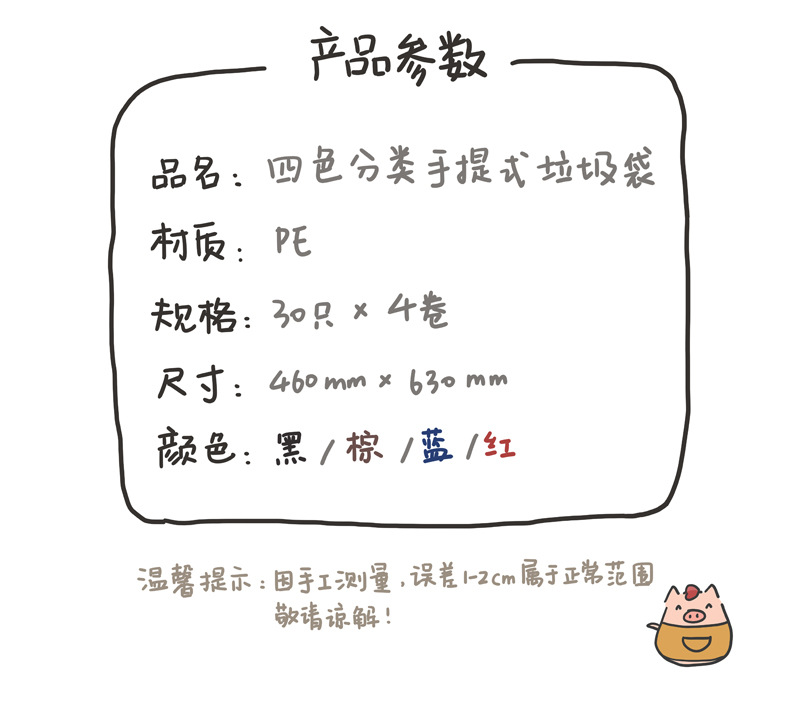 مجموعة "يوشو" -أكياس بلاستيكية يدوية تستخدم لمرة واحدة، مغلفة بالسمك الجاف والرطب